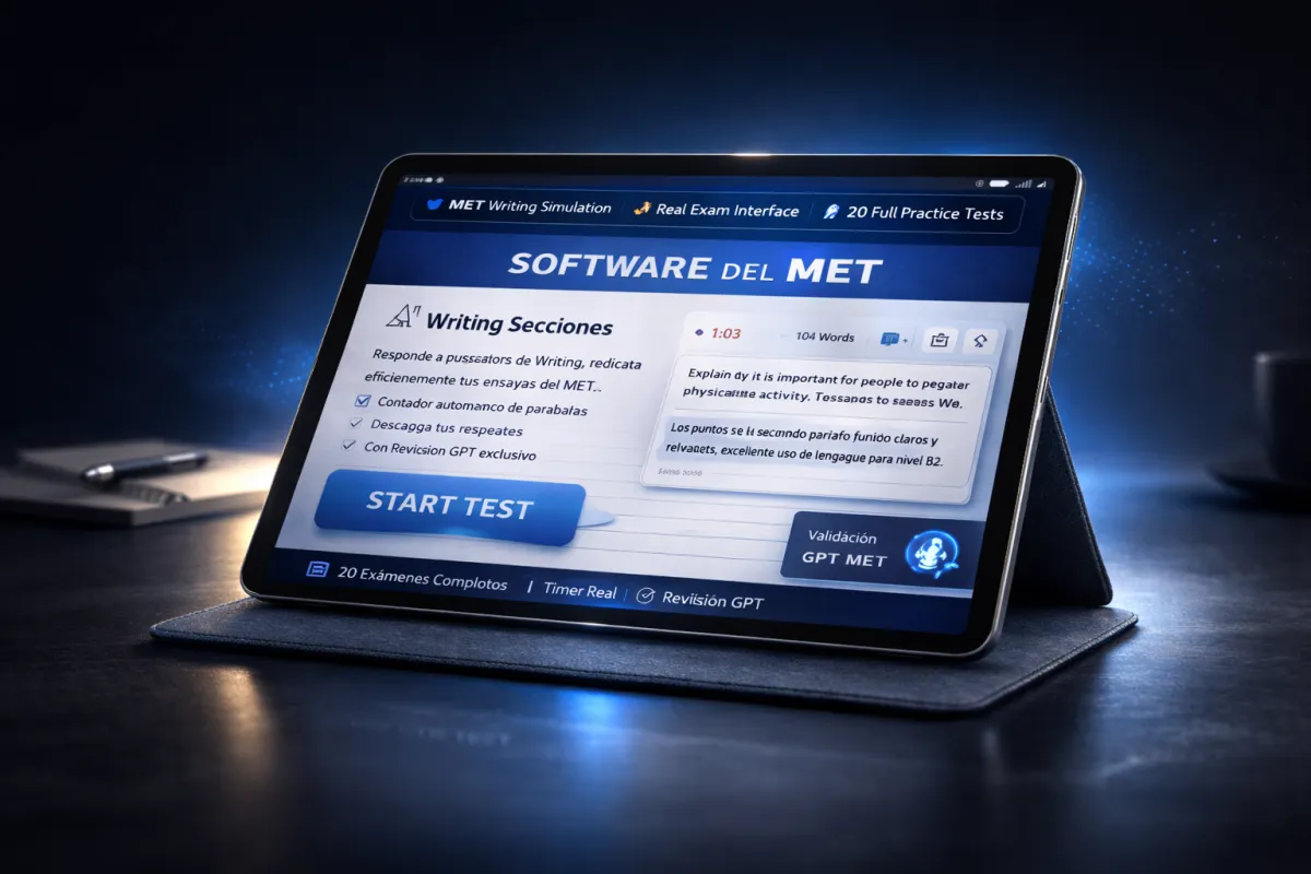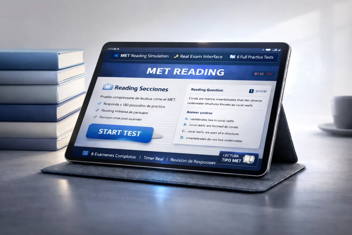 Una plataforma diseñada exclusivamente para simular el examen real, entrenarte bajo presión y darte claridad antes de pagar el MET.
